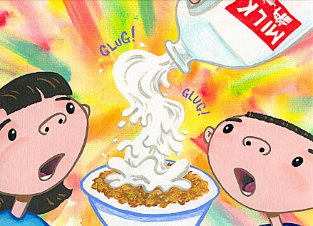 Two children trick and plan to great lengths against each other, for their favorite thing in the world, the "Glug". Hilarious rhyming verse and illustrations will delight all ages, and anyone who hides behind their cereal boxes.