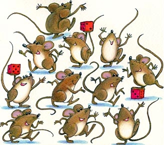 A boy getting a drink late at night is talked into playing a hilarious game of dice with some sneaky mice.